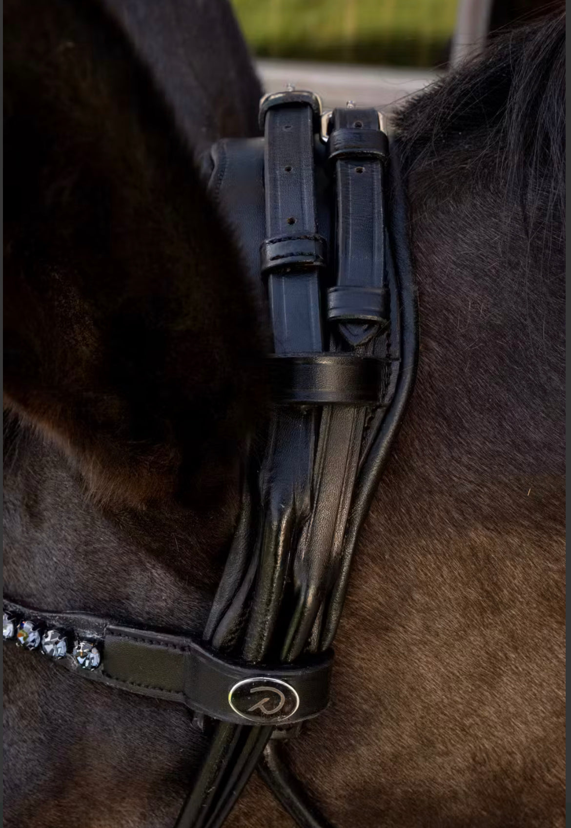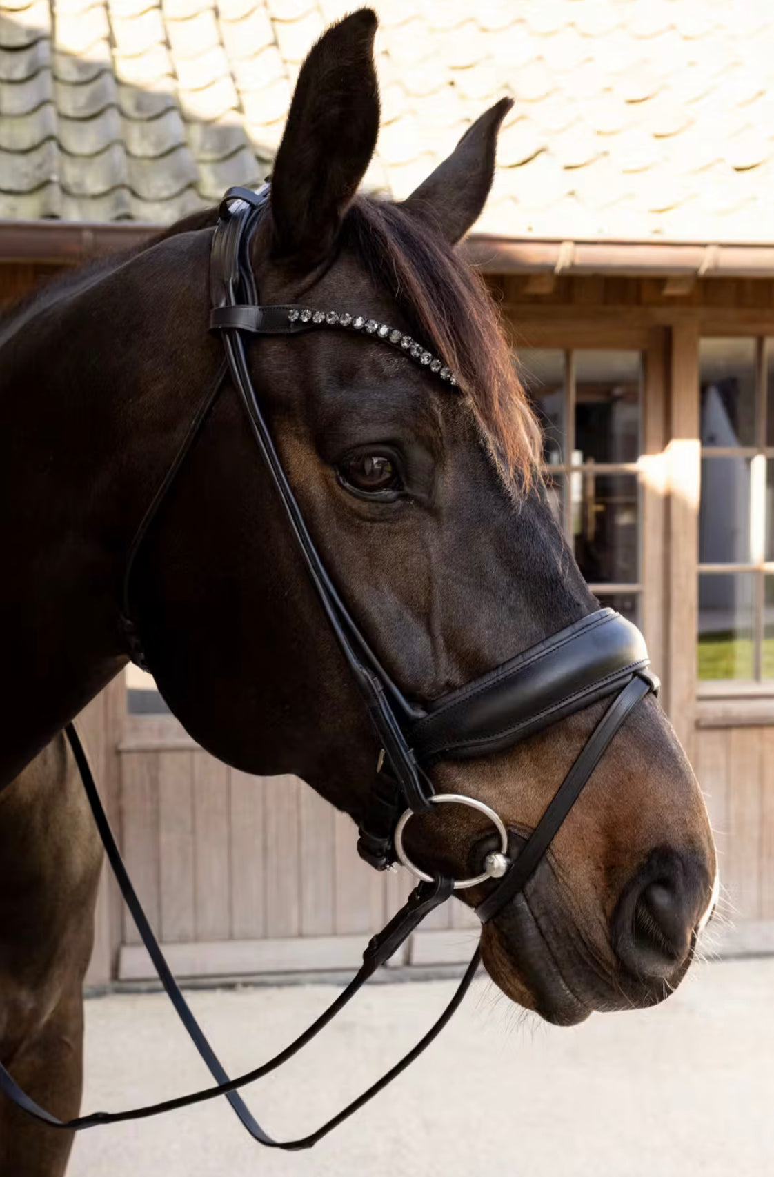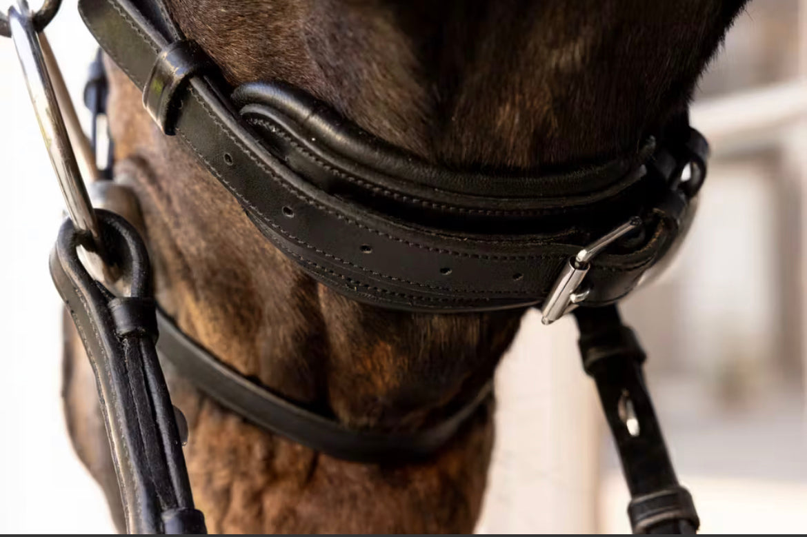 Comfohead Bridle kombinerer avansert ergonomisk design med tidløs eleganse. Det anatomiske hodelaget er mykt polstret og formet for å unngå trykk bak ørene – ideelt for sensitive hester. Rundsydd lær gir både smidighet og et sofistikert uttrykk, samtidig som det tåler daglig bruk. Den brede, polstrede nesereimen fordeler trykket jevnt uten å kompromisse på kontroll. Pannebåndet med diskret krystallutsmykning gir en elegant finish.