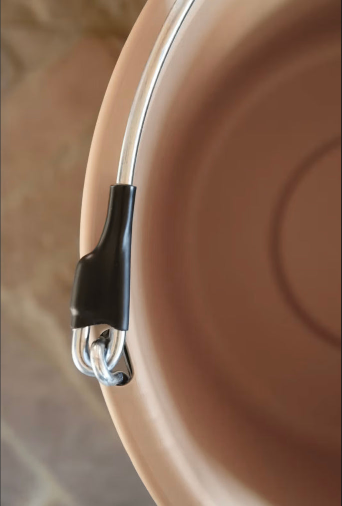 Den flate baksiden sørger for at bøtten henger stabilt på veggen og forhindrer søl, perfekt for aktive hester eller trange stallplasser. I tillegg har håndtaket en spesialutforming som hindrer at hestens man eller hale blir fanget i de krympede endene.